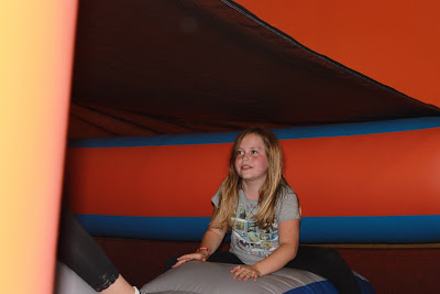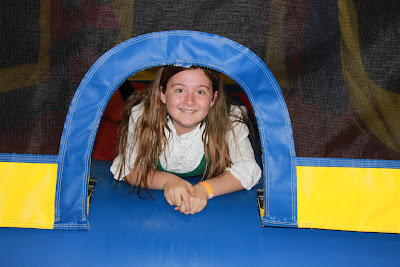 The girls got picked up right from school and off we went! First we made a stop at the recycle center and dropped off some old paint and in return we got tickets for all the girls to go to The Discovery Center for free! Then we headed over to Frogg's Bounce House. We got there early but they let us in anyway.